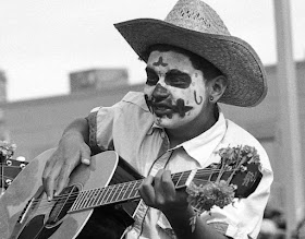 I have to confess that one of the main reasons I like to attend the yearly Day of the Dead Marigold Parade in Albuquerque's South Valley is the excuse it gives me to shoot some Kodak Tri-X.  It seems a film ideally suited to this sort of event. I'm always surprised by the fine grain of this fast film which looks good even in big enlargements.  Tri-X responds well to HC110 development, with good contrast and wide latitude which captures detail in shadows and highlights.  It is also pretty economical; the 24-exposure cartridges are just $4.49, and for a dollar more you get 36 at B&H.  I shot two rolls of Tri-X this year in a Pentax ME Super with the SMC Pentax-A f:2.8/135mm.